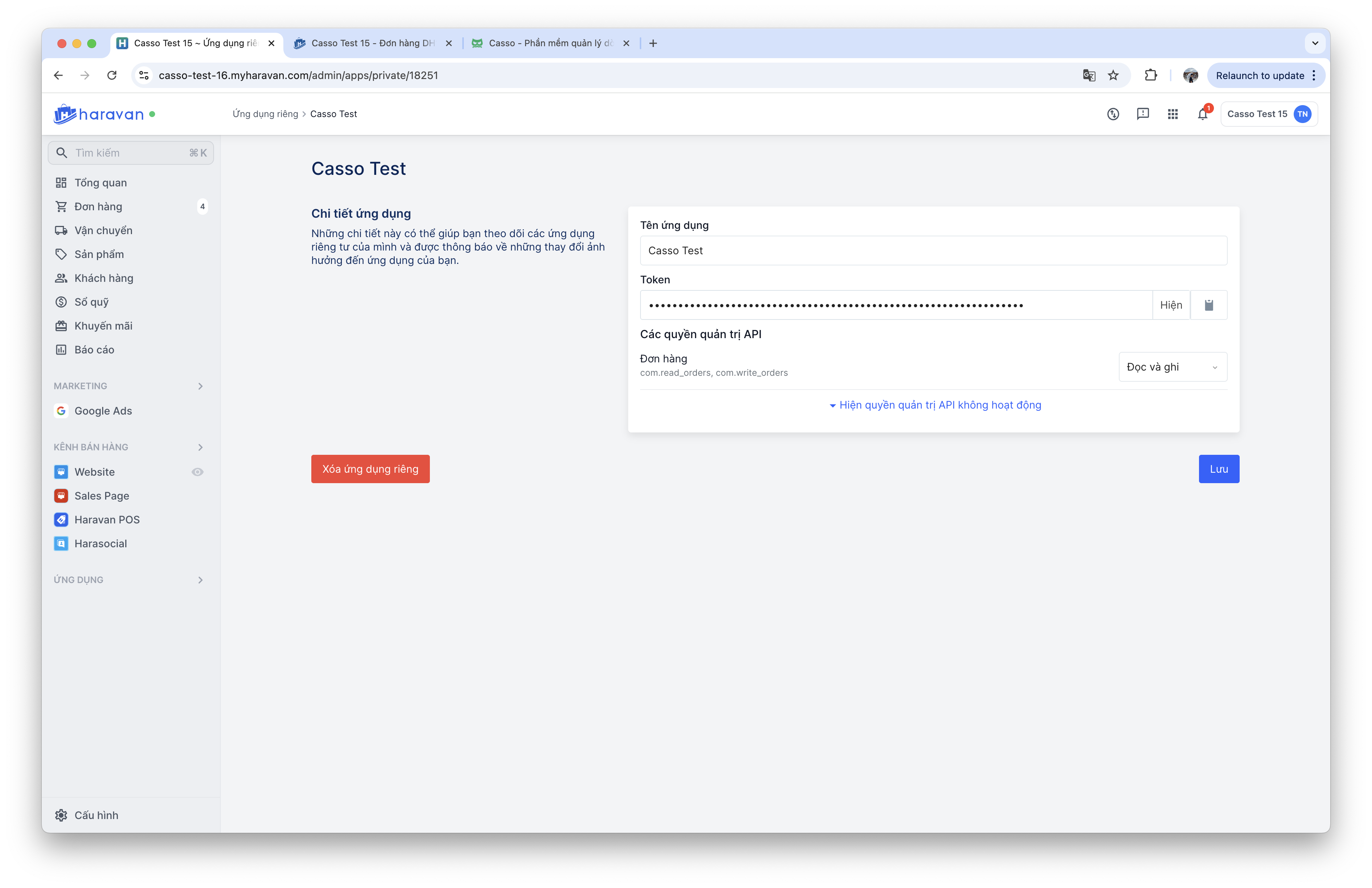 Chú ý: Lưu Token của ứng dụng để bước tiếp theo dán vào API Key của Casso Flow.